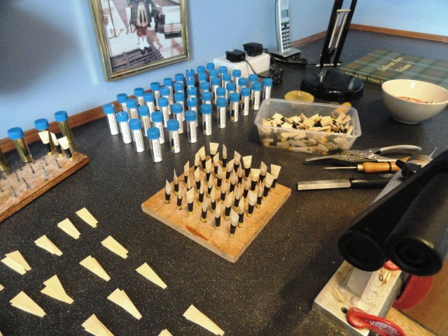 Colin MacLellan brings a long history of teaching, judging, band leadership, and competitive piping success to his reedmaking. MacLellan reeds are crafted to "the most exacting standards. "The reeds are meticulously made, using hand-selected French cane and folded copper staples. Each MacLellan reed comes in a hard plastic re-sealable storage container. Also, reeds are available in 3 strengths, pre-tested in the MacLellan workshop. * Minimum order three reeds.