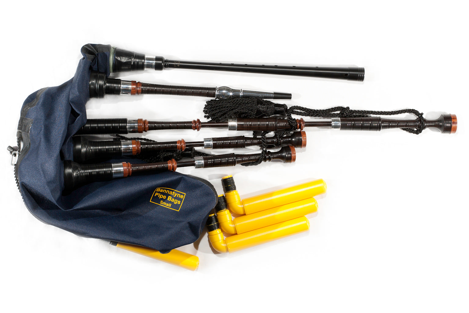 The Folk Pipes have been designed to play along with other instruments, allowing the piper to use a blowing and bag pressure technique as they would with Highland pipes. The low A note on the chanter is tuned to concert pitch A (440Hz) which means that the pipes will naturally play in the keys used by other musicians when playing traditional/folk music. The pipes come set-up, ready to play with covers and cords, a synthetic bag, moisture control system, chanter reed and synthetic drone reeds.